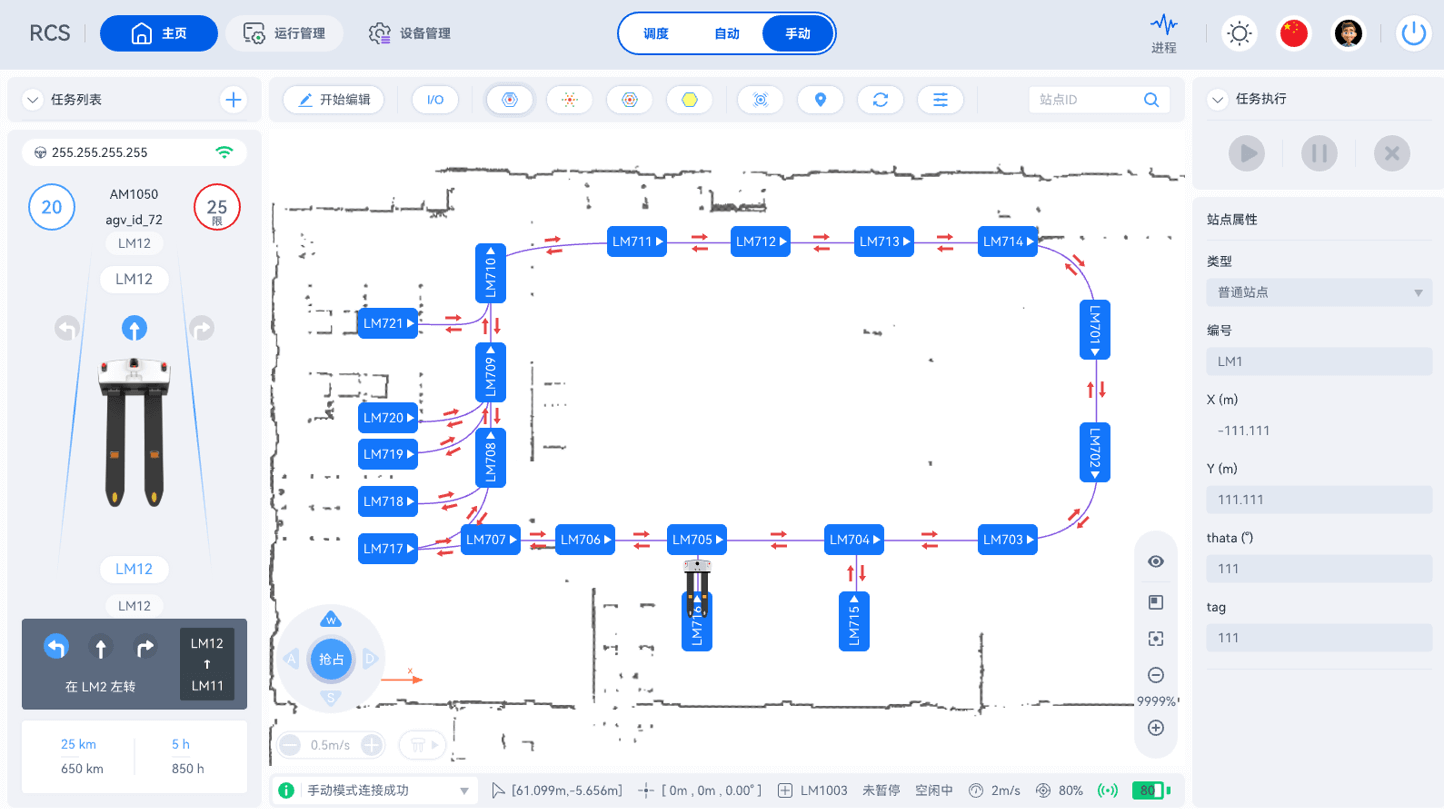 无人叉车的运行路径直接影响搬运效率和安全性。通过lewin乐玩智能调度系统对路线进行动态优化,够实现自动寻路和路径优化,这为提高作业效率提供了有力支持,引入“红绿灯”通道策略,高优先级任务自动锁定路段,避免会车,可显著提高工作节拍。在实际使用前,企业可借助lewin乐玩数字孪生系统对作业流程进行模拟和优化,确定最佳的路径和作业策略。